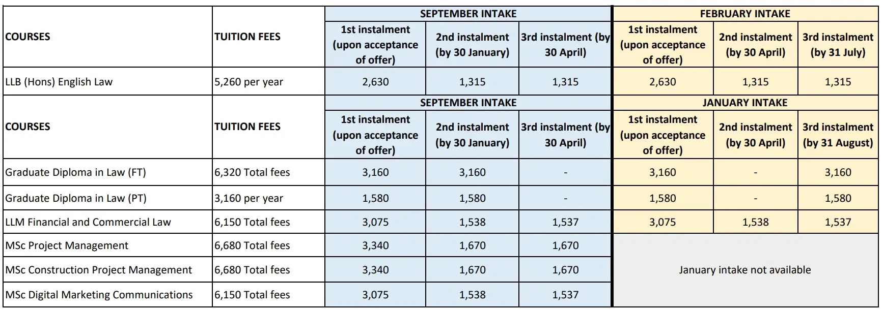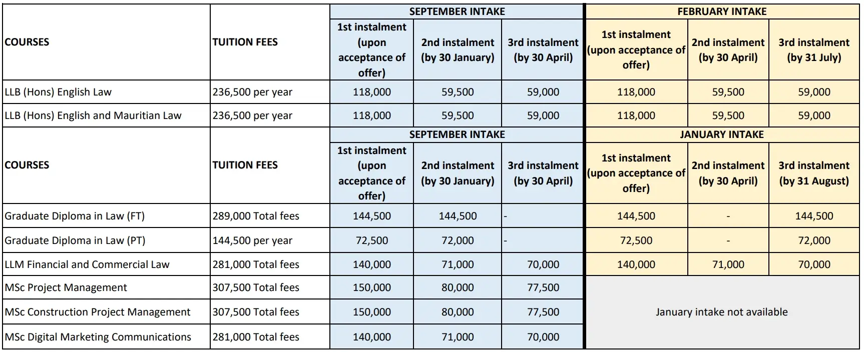 Note: A 5% discount will be given if full fees are paid by 31 August 2025 (For the September 2025 intake)